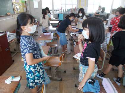 自分からすすんで 公開日 2021/10/08 更新日 2021/10/08 3年生の部屋 自分からすすんで「英語活動」であいさつをしたり,本を選ぶミニゲームをしたり,楽しく学習に取り組む姿がたくさん見られています。