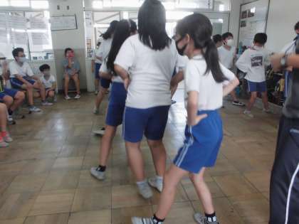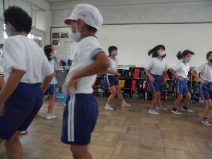 体育 フォークダンス 公開日 2021/10/08 更新日 2021/10/08 5年生の部屋 キャンプファイヤーに向けて,ダンスをしました。 体育の授業のカリキュラムにある「コロブチカ」は,男女が円になり次々にペアが変わっていくダンスなのですが,接触が多いため,やめました。 マイムマイムとジェンカを,手をつながず円になり,踊ります。 でも手をつながずにやるのは,どこかさみしい感じがしますが…。 火の周りを囲んでみんなで楽しく踊れたら良いかなと考えています。