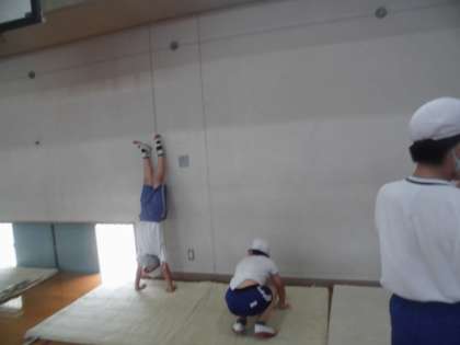 壁登り逆立ちはほとんどいけますが,壁倒立がこわい人が多く,苦戦しています。