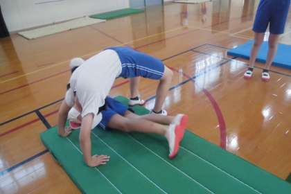 トンネルを友達が通るには,腰をあげて,手で床をグッと押し返す必要があります。