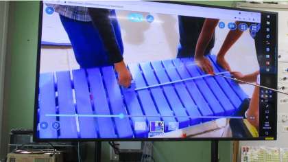 学校の校庭などで気になるものの長さを測り,測っているようすや長さを動画で撮って,みんなで共有しました。