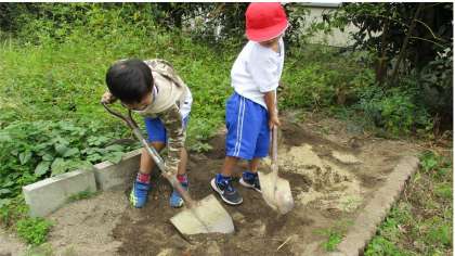 土にうさぎの糞を混ぜて「いい土づくり」,今日も頑張っていました。