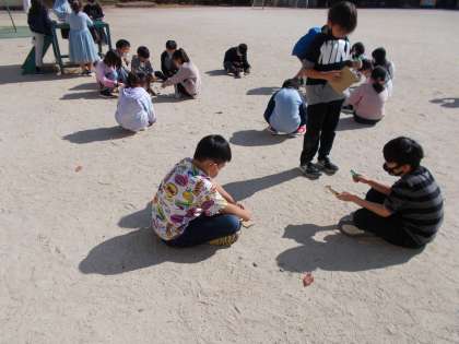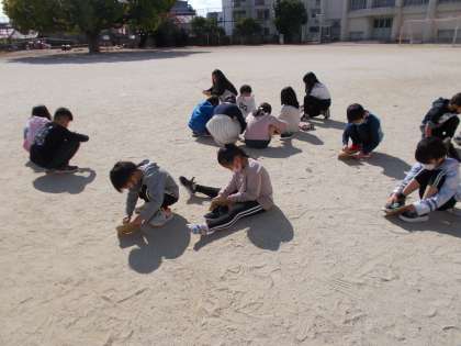 虫眼鏡を使って日光を集めました。集めるのが難しいときは,段ボール紙と虫眼鏡の距離をアドバイスし合うなど協力して学習に取り組みました。
