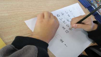 見ながら詠む子もいれば,見ないで詠むことにチャレンジする子も!