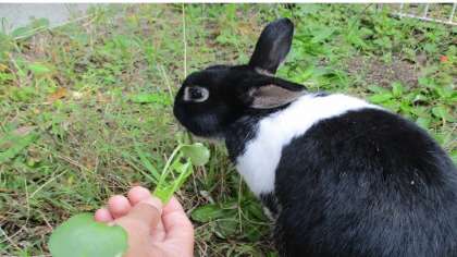 間引いた葉っぱを,うさぎのオセロにあげると・・・