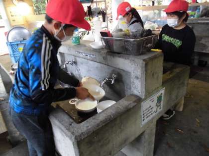 かまど,おかず,ごはんとそれぞれの係の仕事をしっかりすることができました。