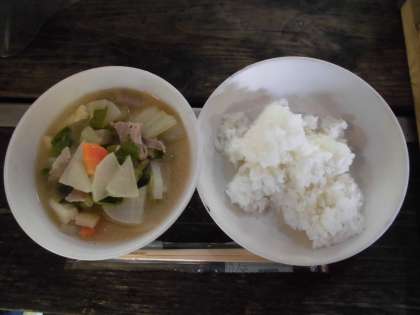 「自分たちでつくったごはんは,やっぱり違うなー。おいしい。」という声がいろいろなところから聞こえてきました。抜群においしかったです。