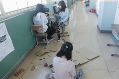 それぞれ担当に分かれて,台本作り。