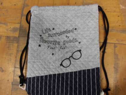 家庭科で作ったオリジナルのかばん(ナップザック・手提げかばん)が完成しました。今回は,ミシンを使って横を縫ったり,ひもを通すところを縫ったりしました。また,返し縫いなどをして丈夫に縫うことを工夫しました。自分で作ったかばんをぜひ使ってほしいと思います。