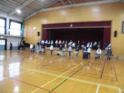 本番に向け,学習発表会の練習を頑張っています。グループごとの発表も,はっきりと自信をもって伝える姿も見られるようになりました。また,「木星」の合奏では,指揮をしっかりと見てリズムを合わせ,木琴・鉄琴・キーボード・鍵盤ハーモニカなどの楽器のハーモニーが響くようになってきました。来週のミニカラフルコンサートやリハーサル,そして本番があります。思い出に残る学習発表会にしたいです。
