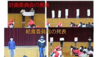 12月の朝会・児童朝会も体育館で行いました。校長先生のお話の後,児童朝会がありました。今月は人権月間ということもあり,計画委員会から向島人権宣言についてお話がありました。また,給食委員会からは給食の返却時間の確認などがありました。こうした委員会の報告やお知らせを聞いて,全校のみんながより良い学校生活を送れるとよいですね。