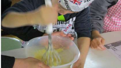 今日は,この『わかったさんのクッキー』を自分たちで読みながら,分量をはかるところから,グループで行いました。