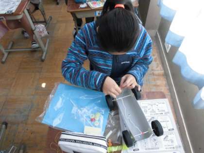 図工の時間には,輪ゴムの力で動く車に自分で考えたデザインで飾り付けをする「ドリームカー」の作成を始めています。タイヤを付けることや輪ゴムをどのように付けるのかといったことも考えて作り始めています。どんな車ができるか楽しみにしています。