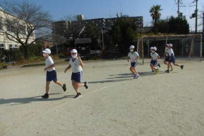 運動強度を確かめながら,自分の体の状態や体力に合わせてジョギングしました。