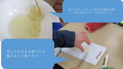 大根が苦手な子もいましたが,「あまい!!」とおいしそうに食べていました。