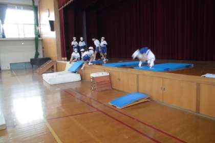 後半は,台上前転,首はねとび,頭はねとびにチャレンジしました。