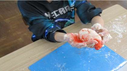 小麦粉を使って,粘土を作りました。
