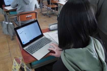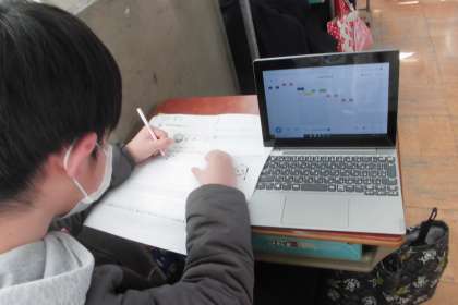 自分の意図した音楽にするため,友達のアドバイスももらいながら考えています。