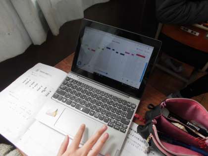 音楽の学習では,タブレットを使って音楽づくりをしました。つくった旋律のリズムを工夫したり,使う楽器の音色を工夫したりして,楽しく学習することができたようです。自分のイメージした曲を作ることができてうれしそうでした。