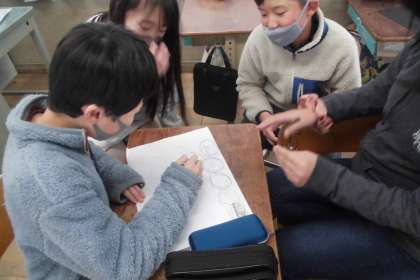 の「おめでとう」掲示をどのようなデザインにするか考えています。