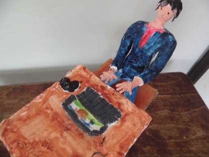 紙粘土などで人物の動きなどを表現し,絵の具を使って色を付けました。子どもたちは,バレーボール選手や画家,会社員やサッカーチームの監督さんなど,いろいろな夢をテーマに,イメージを広げながら丁寧に仕上げています。