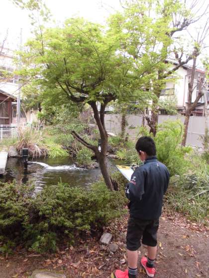遠くから見ると木の全体の姿が分かります。また,木に近づいてみると,近くからでしかわからない気づきができたり,新しい発見ができたりすることがあります。他にも,葉を触ってみたり,幹にふれたりしてみるといろいろなことを感じることができます。子どもたちは,じっくりと木と関わり観察をすることができました。