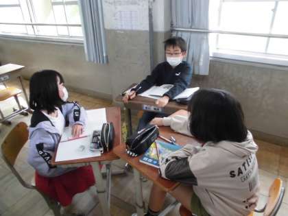 国語の時間には,「なまえつけてよ」という物語を学習しています。今日の学習では,初発の感想を交流しました。登場人物の心情を想像しながら,人物の会話文や行動から,登場人物の心の変化を読み深めることができればと思います。