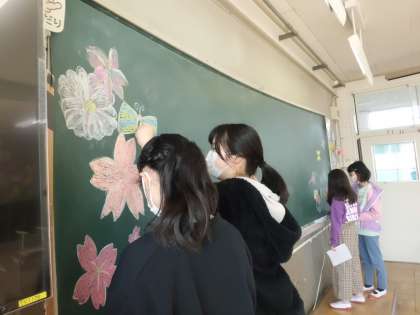 離任式や着任式,入学式の準備,また一年生の教室のデコレーションまで6年生の仕事。