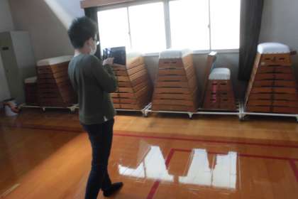 4つの平均台が重ねてしまってあるところを,上からみたら点対称だと気付いている人がいました。