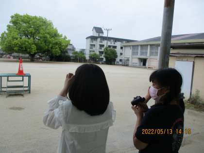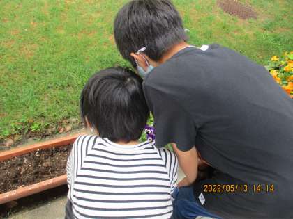 双眼鏡とルーペを使って,校庭の様子やプランターの花や虫を観察しました。