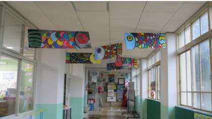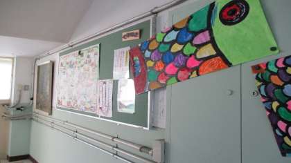 みんなが通る廊下掲示板には,昨年度の「くすのき生活壁新聞」も飾っています。