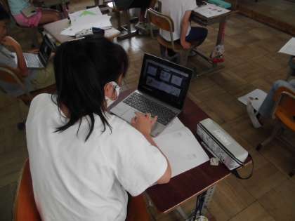 総合の時間には,子どもたちが色々なテーマで調べ学習をしています。昔の遊びや昔の台所の道具の様子や使い方,農家の暮らし,農具の移り変わり,他にも電化製品へつながっていく道具について,乗り物やお金の移り変わりなど,いろいろなテーマで追究活動をしています。他にも,地域の変化や巨椋池の秘密や地域の歴史・移り変わりについて調べていこうと思います。