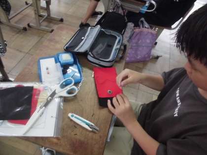小物づくりを頑張っています 公開日 2022/06/21 更新日 2022/06/21 5年生の部屋 家庭科では,フェルトやボタンを使って小物づくりをしています。針を使っての縫い方は,かがり縫いなどもできるようになり,縫う速さも少しずつ速くなってきているようです。また,ボタン付けや玉止め・玉結びもスムーズにできています。休みの日に,お家でも練習をした人も多いようです。また,なみ縫い以外にも,本返し縫い,半返し縫い,かがり縫いなどの練習も,繰り返し練習をしていけたらと思います。