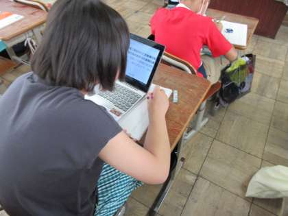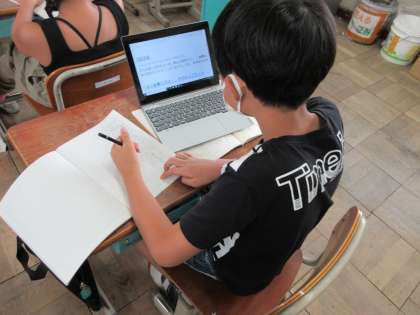 「仕事のくふう,見つけたよ」の学習では,仕事の工夫をみんなに紹介します。今日は,インターネットを使って,自分が発表する仕事について調べました。集中して取り組んでいました。