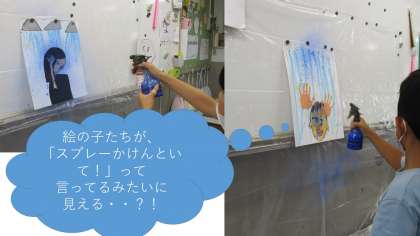 そのあと、指やスプレーなどで水しぶきをたっぷり!これでもかと