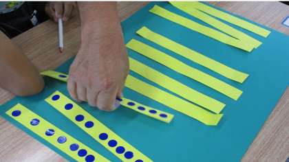 〇のシールを棒に貼っていき、「10の棒」を作っていきました。