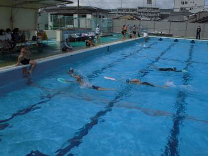 5年生の水泳学習では,主にクロールと平泳ぎの泳力の向上を目指して練習をしてきました。5年生の初めには10mほどしか泳ぐことができなかった子どもたちが25m泳ぐことができたり,平泳ぎ練習をすることでコツをつかんで,50m泳ぐことができた子どももいました。息継ぎをスムーズにすることや泳ぐときのフォームを意識してこれからもがんばってほしいと思います。