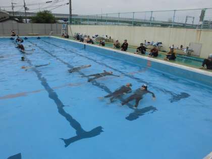 今年度も高学年は,着衣泳を行いました。水難事故から身を守る練習として,「浮いて待つ」を大切にして体を浮かせる練習をしました。また,ペットボトルなどを使って長い時間待つ練習もしました。水難事故から命を守ることができるように願っています。
