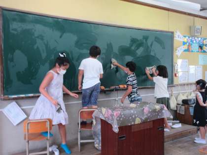 始業式のあとに掃除をしました。教室を中心に夏休みの間にたまったほこりをきれいにしました。