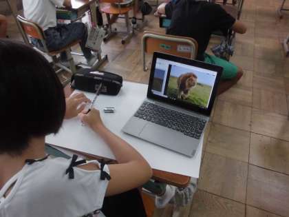 図工の時間には、「エヴィーのひみつと消えた動物たち」という物語から想像を広げ、お話を絵にするコンクールに向けての学習をしています。人物の動きや色々な動物の動きや様子、描きたい場面の様子など、自分の想像を膨らませ、自由な発想で構図や表現の工夫をしながら描いていこうと思います。