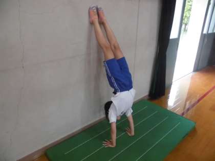 体育の学習では,マット運動をしています。前転・後転だけでなく開脚前転・開脚後転なども練習をしています。また,新しい技として倒立前転などにも挑戦しています。まずは,倒立の感覚をつかむことを大切にして,少しずつ上達することができればと思います。