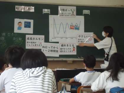 養護教諭の北島先生が、睡眠について分かりやすく教えてくださいました。