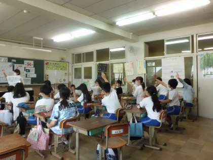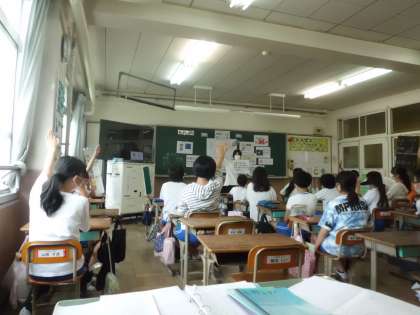 子どもたちが挙手をしている写真は、