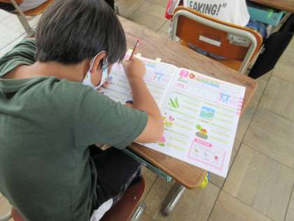 ローマ字の学習を進めています。「ら行」まで学習し,「もう自分の名前全部ローマ字で書けるわ〜!」という声がたくさん聞こえてきました。これからローマ字を使うことが増えてきますので,しっかり覚えていきたいです。