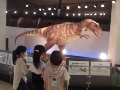 科学センターには、恐竜の化石の標本などもあります。また、ティラノサウルスが動く仕組みになっている展示もあります。実際にどんな鳴き声で、何を食べて、どのような姿をしていたのか想像するだけでワクワクしてきます。子どもたちにも大人気の展示でした。