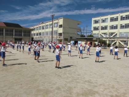 10月13日(木)の体育発表会に向けて,リハーサルを行いました。4・5・6年生のみんなで踊る準備運動(全校ダンス)はとてもリズミカルに踊ることができています。最後のポーズや楽しい手拍子,手足の動きもどんどん上達してきました。みんなで楽しく明るい気持ちになってダンスを踊ることができればと思います。