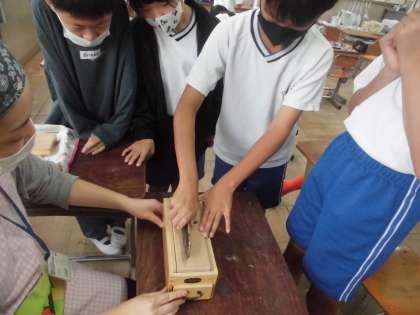 栄養学習では,5つの味覚,特にうま味について学習をしました。日本の食文化の中でも注目されている「だし」の秘密について,湯豆腐の昆布だしの話やかつお節を削る体験,煮干しやシイタケのだしの話など,色々な話を学習しました。お家の食事や給食などでも,だしのうまみを探してほしいと思います。