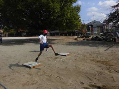 走り幅跳びをしています 公開日 2022/11/04 更新日 2022/11/04 5年生の部屋 体育の学習では、走り幅跳びをしています。助走の距離やスピード、踏切の仕方や空中姿勢などにも気を付けながらより良い記録を目指して取り組んでいます。今日の学習でも自己ベストの記録がたくさん出たようです。