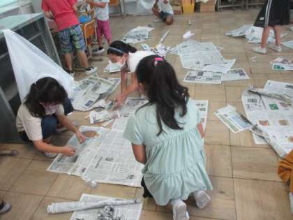 しんぶんしとなかよし 公開日 2022/11/10 更新日 2022/11/10 2年生の部屋 新聞紙を使ってみんなで作りたいものを作っていました。 剣や家、秘密基地などそれぞれでやりたいものを頑張っていました。
