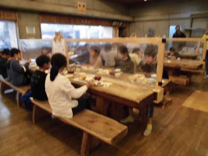 お楽しみの夕食の時間です。花背山の家での2回目の食事です。しっかり味わいました。